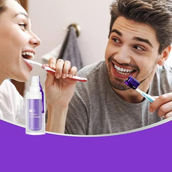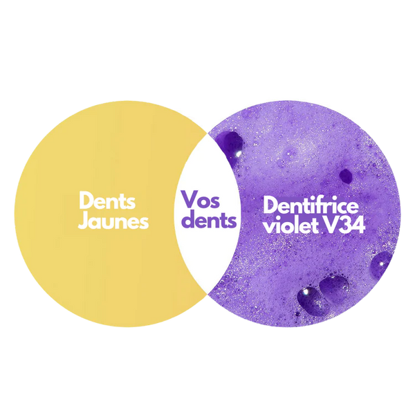 Le correcteur de couleur V34 est une nouvelle technologie qui se base sur un phénomène scientifique connu et reconnu. Le jaune et le violet sont des couleurs complémentaires. Celles-ci sont opposées l'une à l'autre sur la roue chromatique. La formule V34 du dentifrice utilise une couleur violette intense qui dissout parfaitement la teinte jaune présente sur les dents.